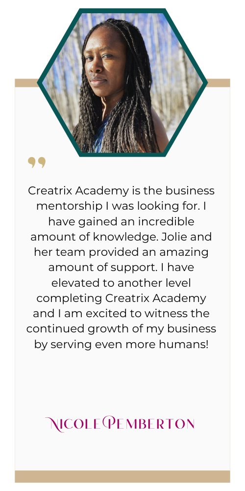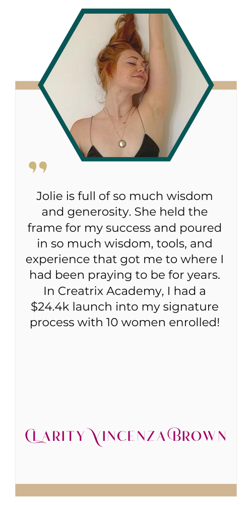 I created Creatrix Academy because it was the program I wanted to see in this industry. It was the program I always wanted in my beginning, tender years. Real strategy, tested methods, boss-ass marketing blueprints, all with the feminine heart in mind. The frequency-first spiritual approach is what has worked for me in business, so that’s how I lead.